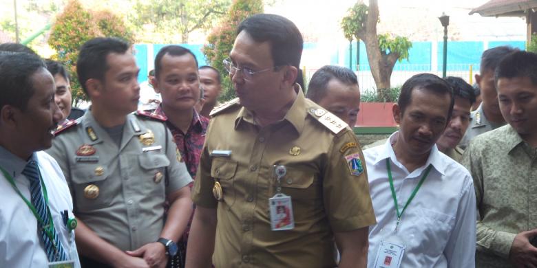 Gubernur DKI Basuki Tjahaja Purnama saat meninjau langsung pelaksanaan UN SMP di MTsN 3 Jakarta, Senin (9/5/2016).