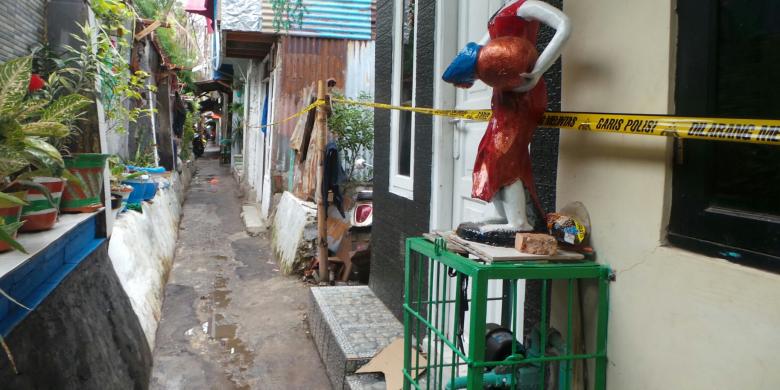 Lokasi penggerebekan narkoba di Jalan Slamet Riyadi 4 dekat Komplek Berlan masih diberi garis polisi. Senin (25/1/2016)
