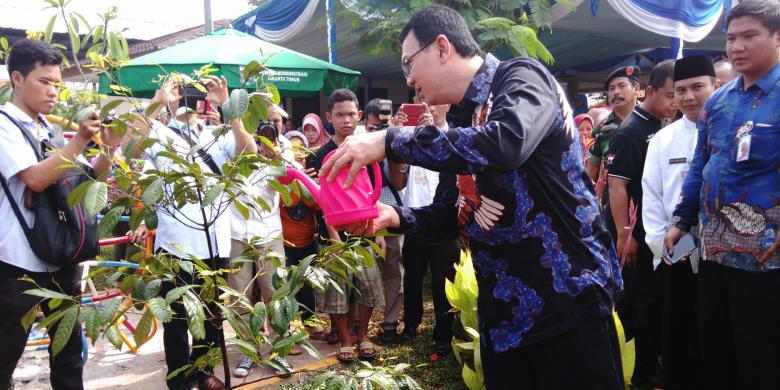 Gubernur DKI Jakarta Basuki Tjahaja Purnama meresmiskan Ruang Publik Terpadu Ramah Anak (RPTRA) Kebon Pala "Berseri", di Makasar, Jakarta Timur, Kamis (28/1/2016).