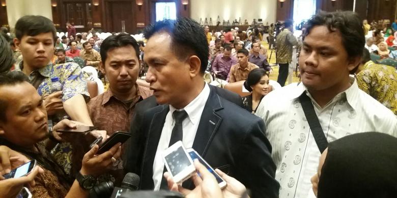 Ketua Umum Partai Bulan Bintang, Yusril Ihza Mahendra dalam acara peluncuran buku ensiklopedinya di Hotel Bidakara, Pancoran, Jakarta Selatan, Sabtu (6/2/2016)