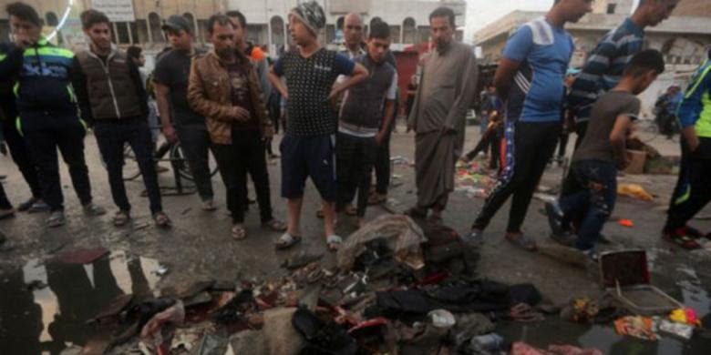 BAGHDAD, Dua bom meledak di sebuah pasar yang ramai pengunjung di Ibu Kota Irak, Baghdad, Minggu (28/2/2016). Kejadian itu menewaskan sedikitnya 38 orang dan melukai puluhan lainnya.