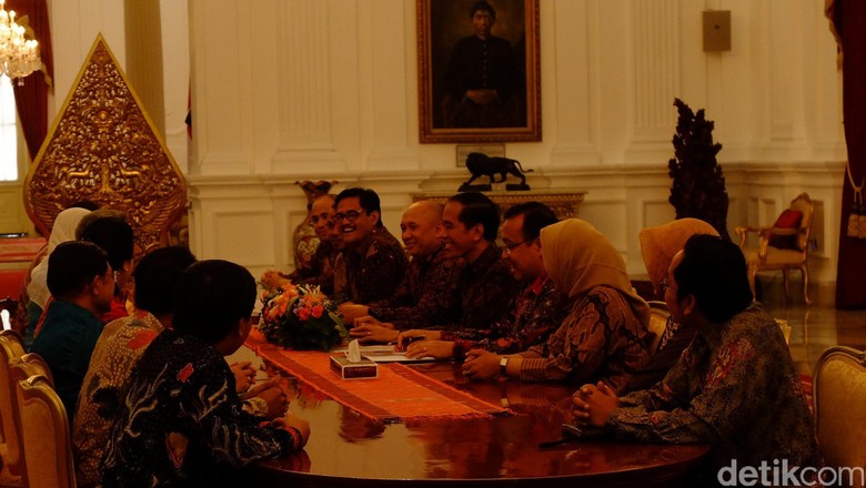 Jakarta - Presiden Joko Widodo bertemu dengan 15 doktor ilmu politik Universitas Indonesia. Dalam pertemuan selama satu jam, Presiden membahas banyak hal mulai dari perkembangan program revolusi mental hingga peristiwa penangkapan nelayan China penangkap ikan di perairan Natuna, Indonesia.