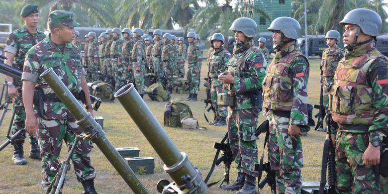 Komandan Korem (Danrem) 011/Lilawangsa, Kolonel Inf Dedy Agus Purwanto meninjau perlengkapan tempur dan prajurit di Batalyon Raider 111/Karma Bhakti, Aceh, Senin (28/3/2016)