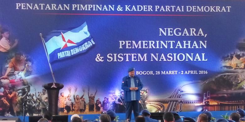 Ketua Umum Partai Demokrat Susilo Bambang Yudhoyono saat memberikan pemaparan di hadapan ratusan kader Partai Demokrat di Hotel Novotel, Bogor, Senin (28/3/2016).