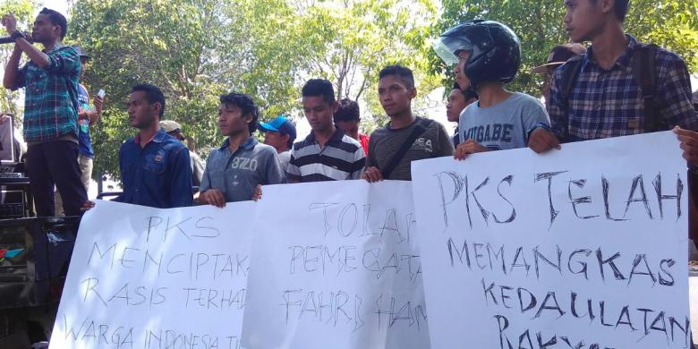 "Kami menolak pemecatan Fahri Hamzah," kata Ari Kapitang Korlap aksi.