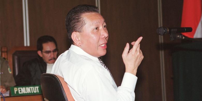 Terdakwa dalam kasus Bank Bali, Joko Soegiarto Tjandra, berbicara dengan penasihat hukumnya (tak terlihat) saat tuntutan pidana dibacakan jaksa penuntut umum Antazari Ashar di Pengadilan Negeri Jakarta Selatan, Senin (31/7). Joko dituntut hukuman 18 bulan penjara. Kompas/Danu Kusworo (DNU) 31-07-2008 Dimuat (1/8).