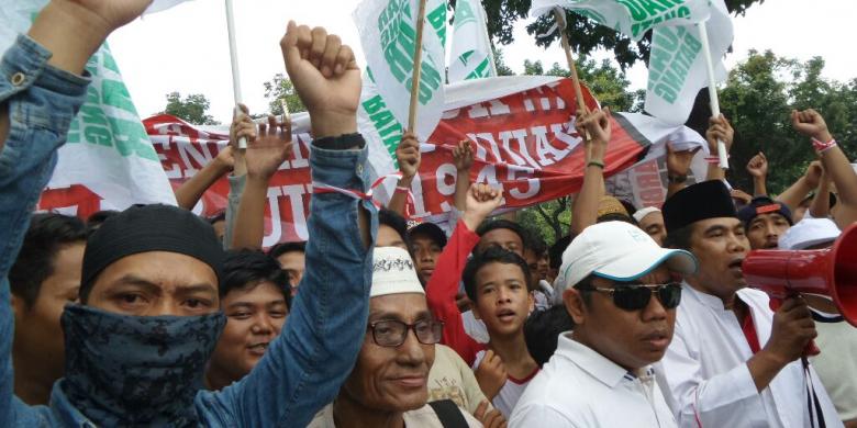 Warga Luar Batang melakukan aksi unjuk rasa di depan Balai Kota DKI Jakarta, Jalan Medan Merdeka Selatan, Selasa (3/5/2016).
