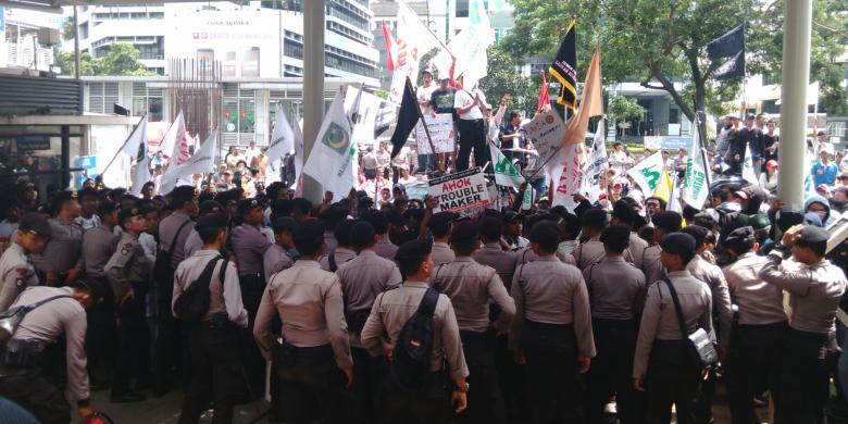 Unjuk rasa itu mendapat pengawalan ketat dari aparat kepolisian membuat barikade di depan pintu masuk KPK. Terlihat beberapa utusan massa aksi masuk ke dalam KPK.