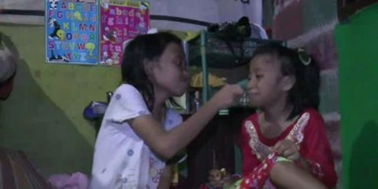 POLEWALI MANDAR, Kakak beradik, Tiara (10) dan Citra (8), sudah dua bulan tinggal berdua saja di sebuah tempat bekas bengkel las. Lokasi ini hanya sekitar 100 meter dari Kantor Lurah Polewali Mandar, Sulawesi Barat, dan beberapa meter dari Puskesmas Massenga.