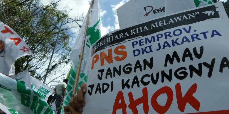Spanduk sindiran kepada PNS DKI yang dibuat oleh warga Luar Batang.
