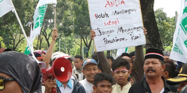 Warga Luat Batang melakukan aksi unjuk rasa di Balai Kota DKI Jakarta, Selasa (3/5/2016). Mereka meprotes kebijakan Gubernur DKI Jakarta Basuki Tjahaja Purnama yang akan menggusur warga Luar Batang.