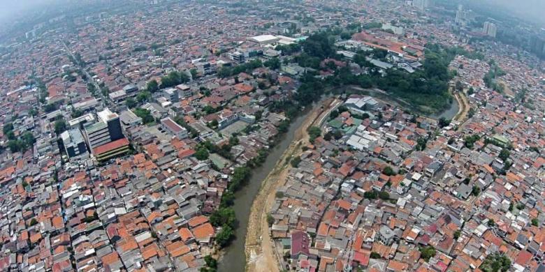 Permukiman padat di Bidaracina, di sepanjang bantaran Kali Ciliwung, Jatinegara, Jakarta Timur, Kamis (27/8/2015). Bidaracina merupakan kawasan yang akan digusur terkait proyek normalisasi dan sodetan Kali Ciliwung.