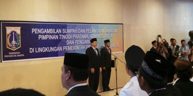 Gubernur DKI Jakarta Basuki Tjahaja Purnama melantik ratusan pejabat di lingkungan Pemprov DKI Jakarta, di Balai Kota DKI Jakarta, Jumat (17/6/2016).