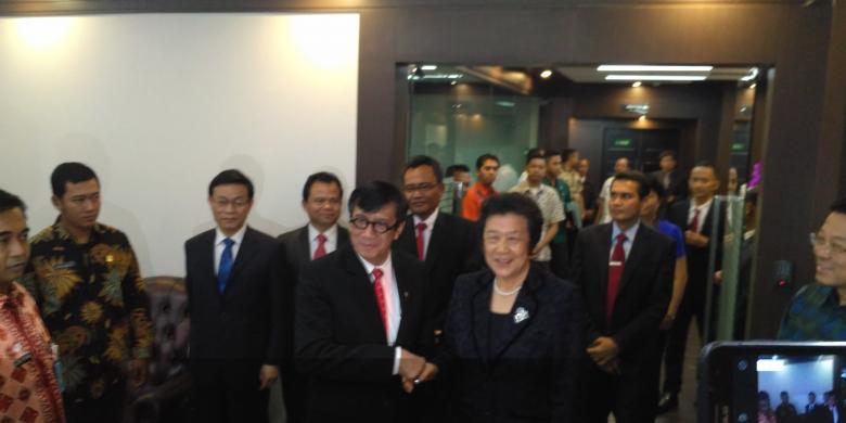 JAKARTA, Menteri Hukum dan HAM Yasonna Laoly menerima kunjungan kehormatan dari Menteri Kehakiman China Wu Aiying beserta delegasi. Pertemuan tersebut menghasilkan kerja sama berupa penandatanganan nota kesepahaman dalam hukum dan HAM yang berlaku selama tiga tahun.