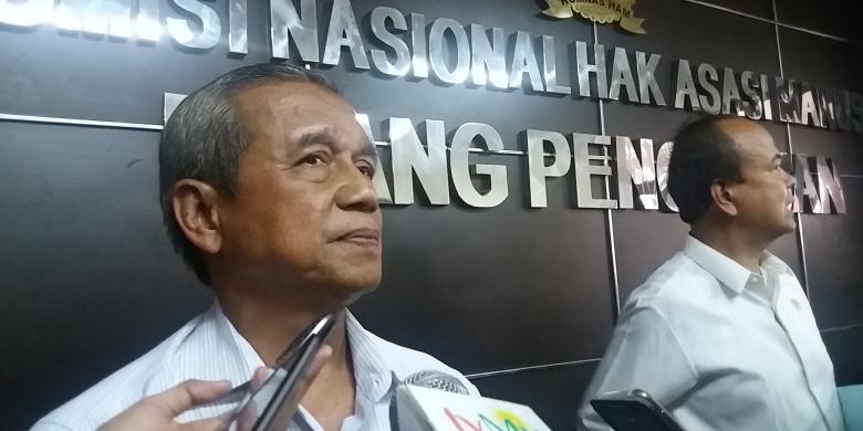 Ketua bidang Hukum dan HAM PP Muhammadiyah Busyro Muqodas usai konferensi pers hasil otopsi jenazah terduga teroris Siyono di Kantpr Komnas HAM, Jalan Latuharhary, Menteng, Jakarta Pusat, Senin (11/4/2016)