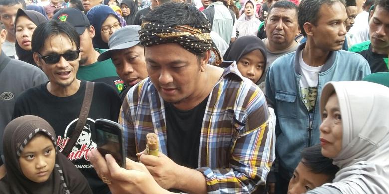 Dicky Candra sedang jajan camilan bersama warga di Jalan HZ Mustofa, Kota Tasikmalaya, Minggu (18/7/2016) kemarin.