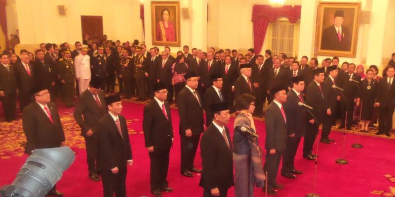 Suasana pelantikan 12 menteri dan Kepala BKPM yang baru oleh Presiden Joko Widodo di Istana Negara, Rabu (27/7/2016).