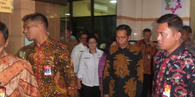 JAKARTA, Presiden Joko Widodo meninjau posko di Puskesmas Kecamatan Ciracas, tempat dilakukannya vaksinasi ulang terhadap anak yang menjadi korban vaksin palsu, Senin (18/7/2016) pagi. Posko tersebut dibuka untuk korban vaksin palsu di RS Harapan Bunda dan Klinik Bidan Elly.