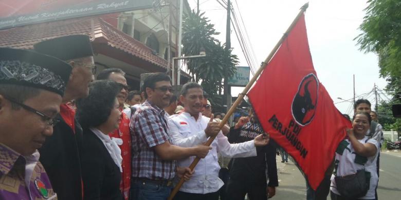 Ketua DPP PDI-P bidang Organisasi, Kaderisasi, dan Keanggotaan Djarot Syaiful Hidayat melepas peserta mudik gratis di Kantor DPP PDI-P, Jalan Lenteng Agung, Sabtu (2/7/2016).