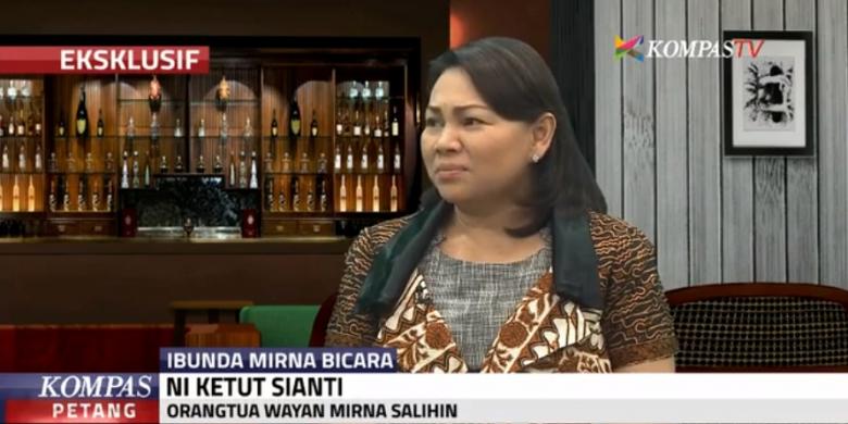 Ni Ketut Sianti, ibu Wayan Mirna Salihin, saat wawancara eksklusif di Kompas TV dan kemunculan pertamanya di televisi, Selasa (19/7/2016).