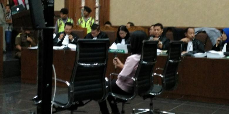 Saksi Jukiyah yang bekerja sebagai kasir di kafe Olivier memberikan keterangan dalam sidang Jessica Kumala Wongso di Pengadilan Negeri Jakarta Pusat, Rabu (27/7/2016).