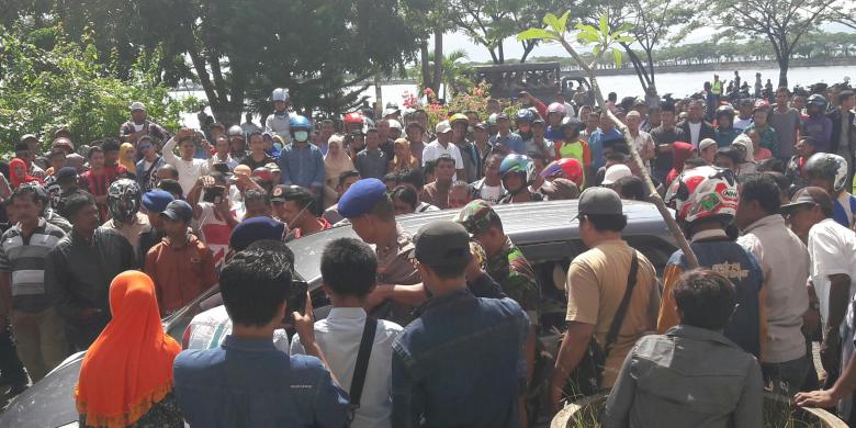 Warga di TPS 4 Wamponiki, Raha mengerumuni mobil salah satu anggota KPU Muna yang dievakuasi dari lokasi TPS yàng gelar PSU di Muna