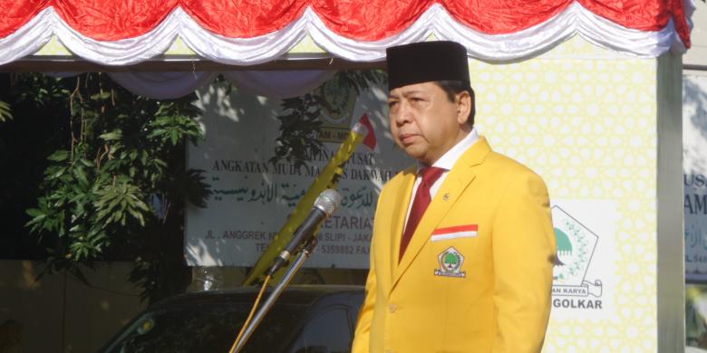Ketua Umum DPP Partai Golkar Setya Novanto saat menjadi pembina upacara hari kemerdekaan di Kantor DPP Partai Golkar, Slipi, Jakarta Barat, Rabu (17/8/2016)