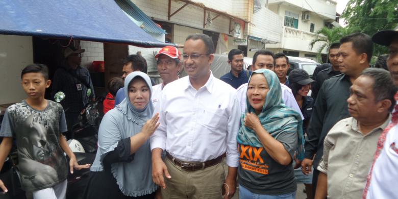 Calon gubernur DKI Jakarta nomor pemilihan tiga, Anies Baswedan, menyapa warga saat berkunjung ke Kelurahan Glodok, Kecamatan Tamansari, Jakarta Barat, Kamis (3/11/2016).