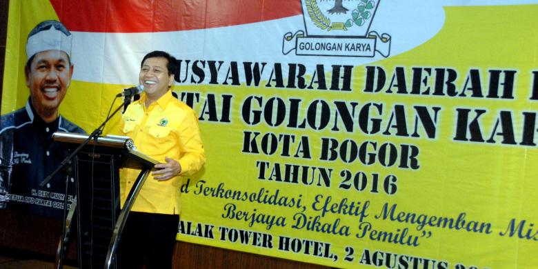 Ketua Umum Partai Golkar Setya Novanto saat memberikan sambutannya dalam Musyawarah Daerah DPD Partai Golkar Kota Bogor, di Hotel Salak Tower, Bogor, Jawa Barat, Selasa (2/8/2016).