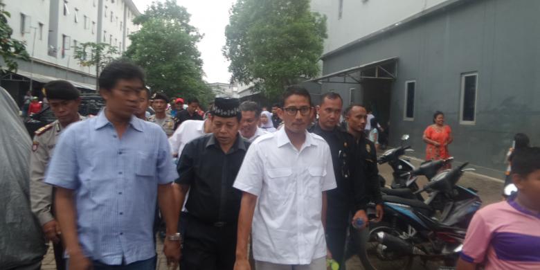 Calon wakil gubernur DKI Sandiaga Uno mendatangi warga Rusun Muara Angke, Jakarta Utara, Kamis (3/11/2016)